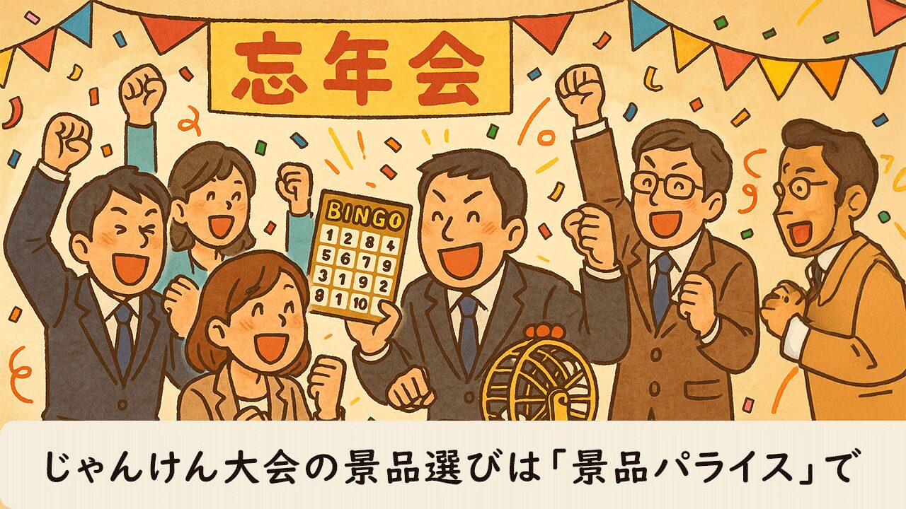 会社の忘年会や歓送迎会のじゃんけん大会の景品は、「大人がもらって本当に嬉しいか」「持ち帰りやすいか」が重要です。おしゃれな家電やキッチン家電、高級グルメ、ギフトカードなど、仕事帰りにそのまま持って帰っても困らないものを中心に考えましょう。